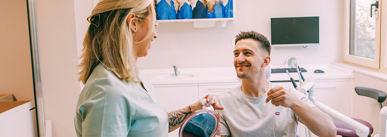Karies entsteht durch Bakterien, die Zucker in Säuren umwandeln und so den Zahnschmelz angreifen. Bei Dr. Kares wird Karies früh erkannt und direkt behandelt, um Folgeschäden zu vermeiden. Tipps zu Zahnpflege, Ernährung und regelmäßige professionelle Zahnreinigung helfen, Karies vorzubeugen.